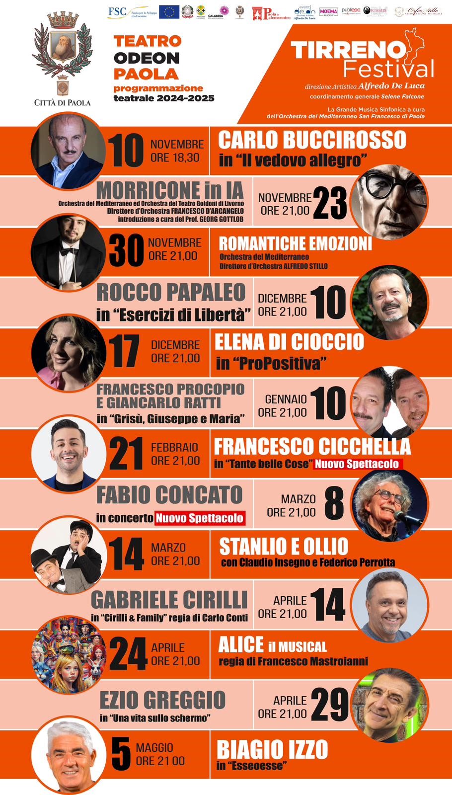 In conferenza presente anche tutta la giunta comunale di Paola, a dimostrazione della vicinanza alla cultura ed incremento turistico, e Pino De Rose che sarà supervisore e coordinatore dell’intera programmazione teatrale. Riflettori puntati sul Teatro Odeon di Paola pronto ad ospitare una grande stagione teatrale che abbina tradizione ed innovazione. Inizio il 10 Novembre con Carlo Buccirosso in “Il vedovo allegro”. Campagna abbonamenti aperta presso il Cinema Teatro Odeon di Paola.