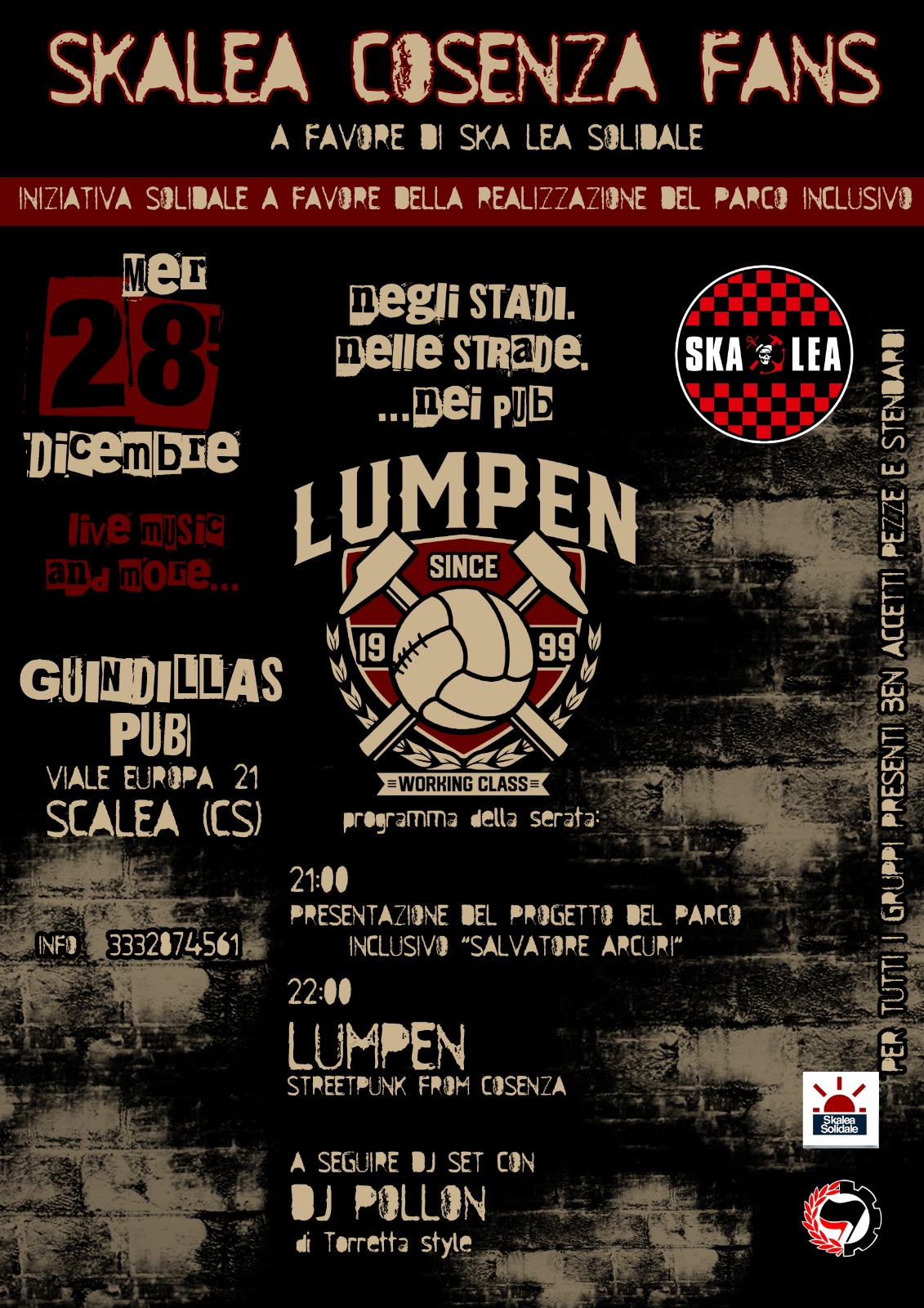 MercoledƬ 28 dicembre 2022: una serata musicale per sostenere la realizzazione di un Parco Inclusivo, progetto ideato da Skalea Solidale Odv per il ripristino di un'area pubblica da consegnare all'uso comunitario. (altro…)