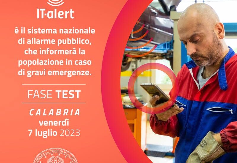 Sui telefoni cellulari di tutte le persone che si trovano, anche in transito, sul territorio calabrese sarĆ inviato il seguente messaggio: āQuesto ĆØ un messaggio di test del sistema di allarme pubblico italiano.