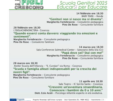 Quest'anno la scuola genitori ha come tema "EducarSi per Educare" ed è caratterizzata da cinque incontri che si svolgeranno